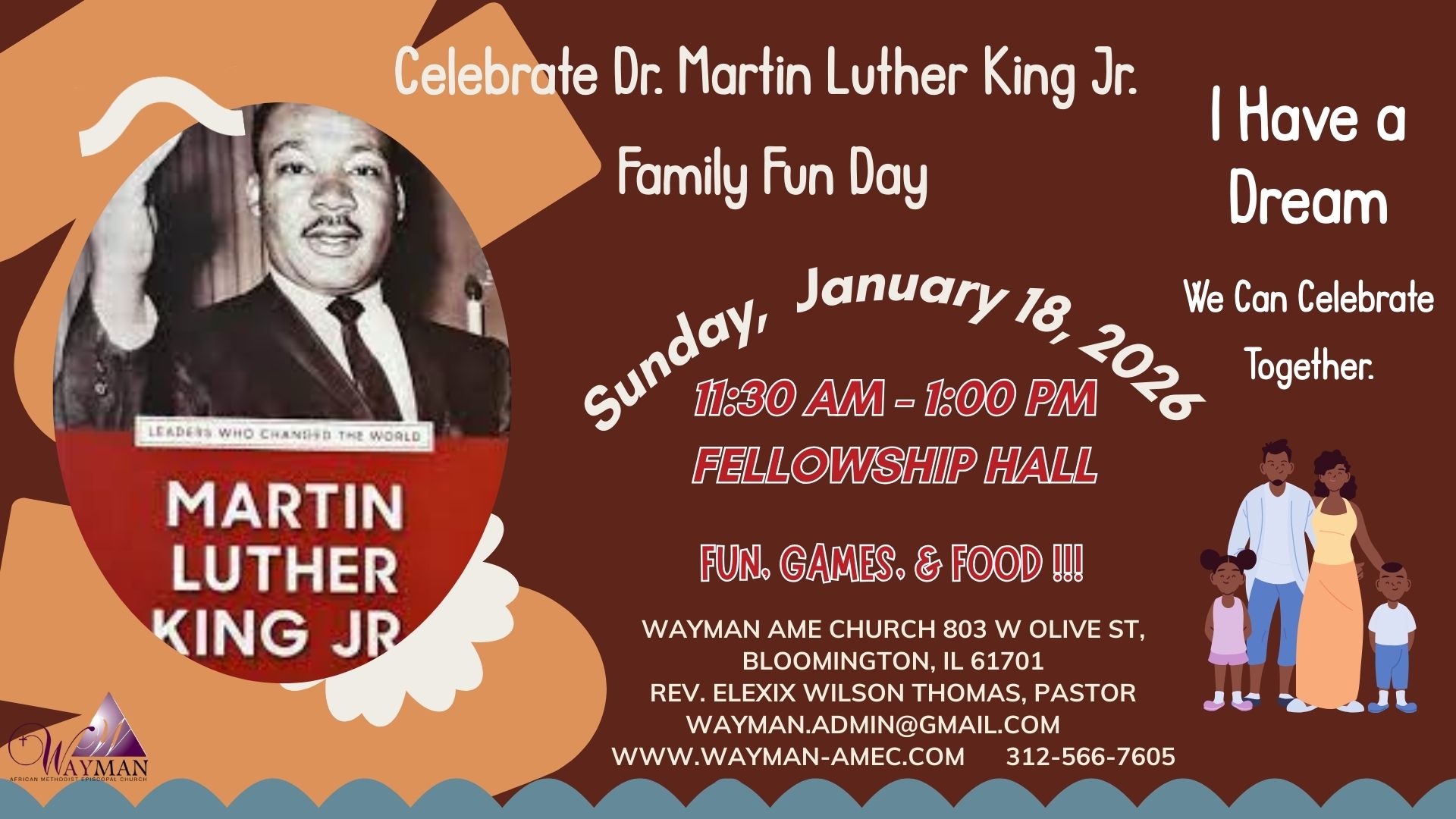 | Sunday | 18 Jan | 12:00 PM | Celebrating Martin Luther King Jr. Family Fun Day |
