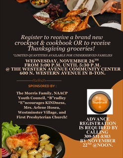 Here’s an excellent opportunity to volunteer! The NAACP Youth Council is requesting that members come out to help them shop for the underserved. If interested, please meet at the Normal Walmart on Greenbriar at 5:00 p.m. on Monday, November 24th. The Youth Council, in conjunction with the Morris Family, Mrs. Arlene Hosea, Westminster, First Presbyterian Church, and Bradley Encourages Kindness will bless many families during the Thanksgiving Season!